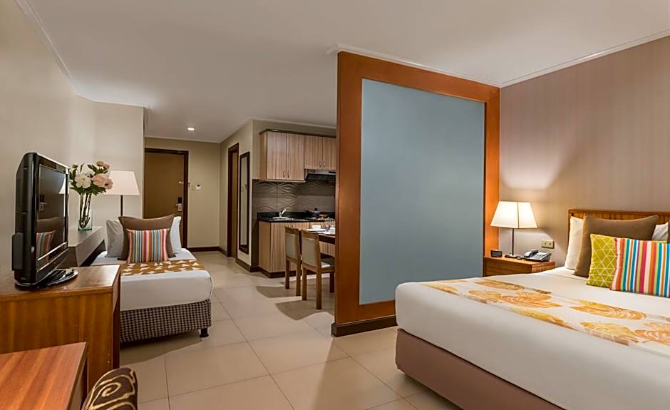 Large, air-conditioned suites with an private bathroom, a mini-bar and a cable TV. They also have comfortable seating areas and private kitchenettes.